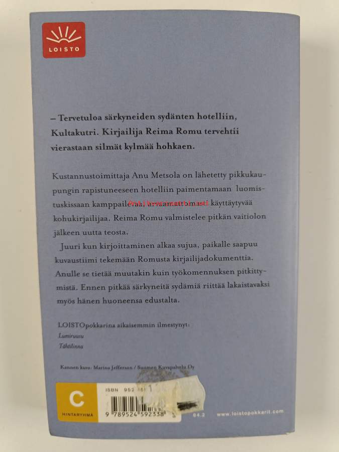 Hyvä. Pienoista kolhua reunoilla ja kulmissa, pienoista kulumaa kansissa, takana vanhoja hintalappuja