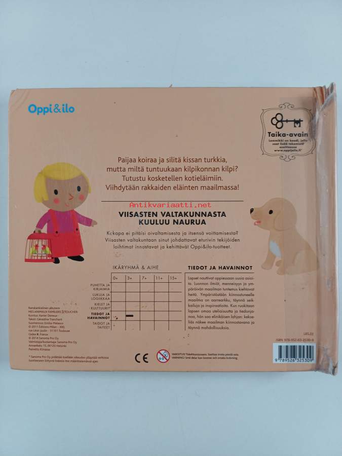 Muu(t) tekijä(t): Emilia Melasuo, Géraldine TranchantSarja: Oppi & ilo: tiedot ja havainnotAlkuteos: Mes animaux familiers à toucherAsiasanat: lastenkirjallisuus, suomenkielinen kirjallisuus