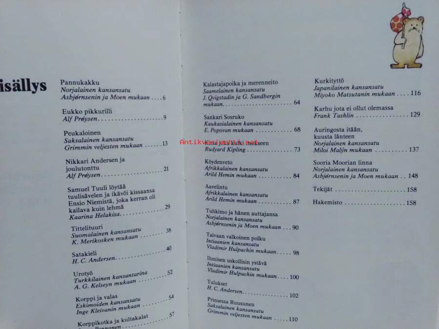 satukirja, sisällysluettelo kuvassa