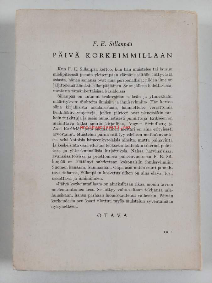 Päivä korkeimmillaan : Suhteita ihmisiin ja ihmisryhmiin (signeerattu, tekijän omiste)