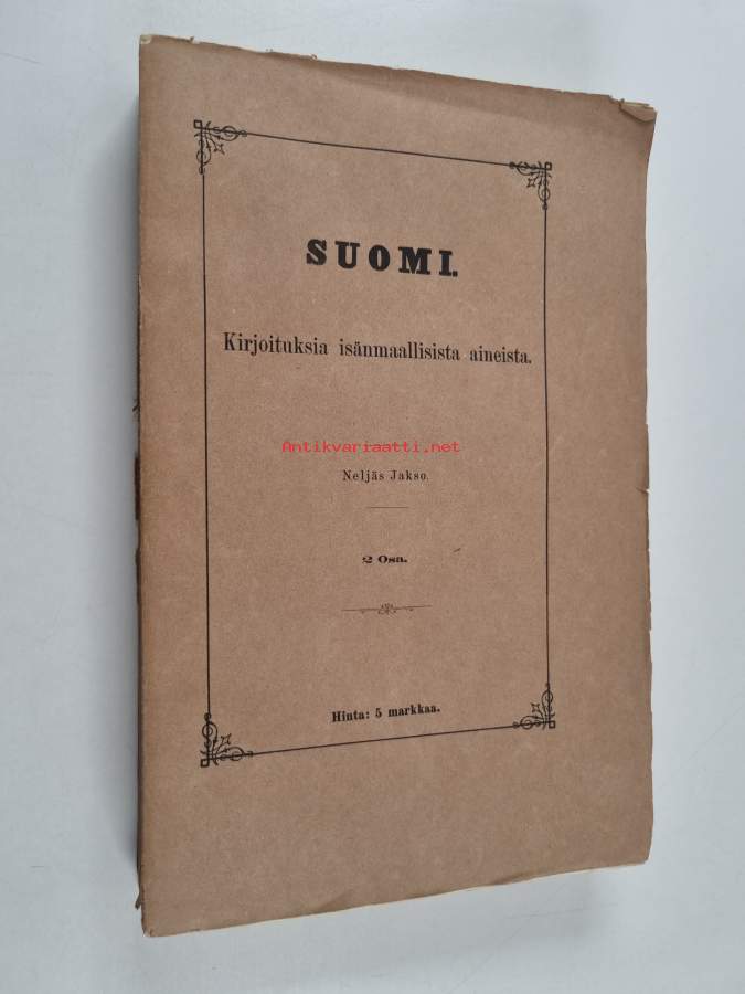 Suomi : Kirjoituksia isänmaallisista aineista - Neljäs jakso, 2. osa : J. L. Runebergin suomalaisuus : esitelmä ; Suomen lounaismurteiden äännehistoria : konsonan...