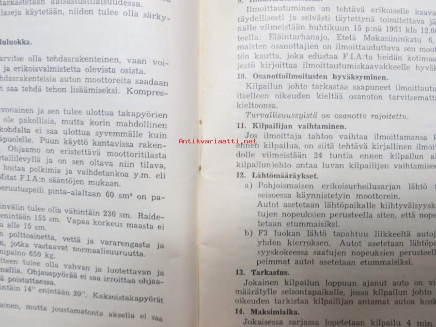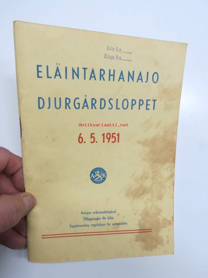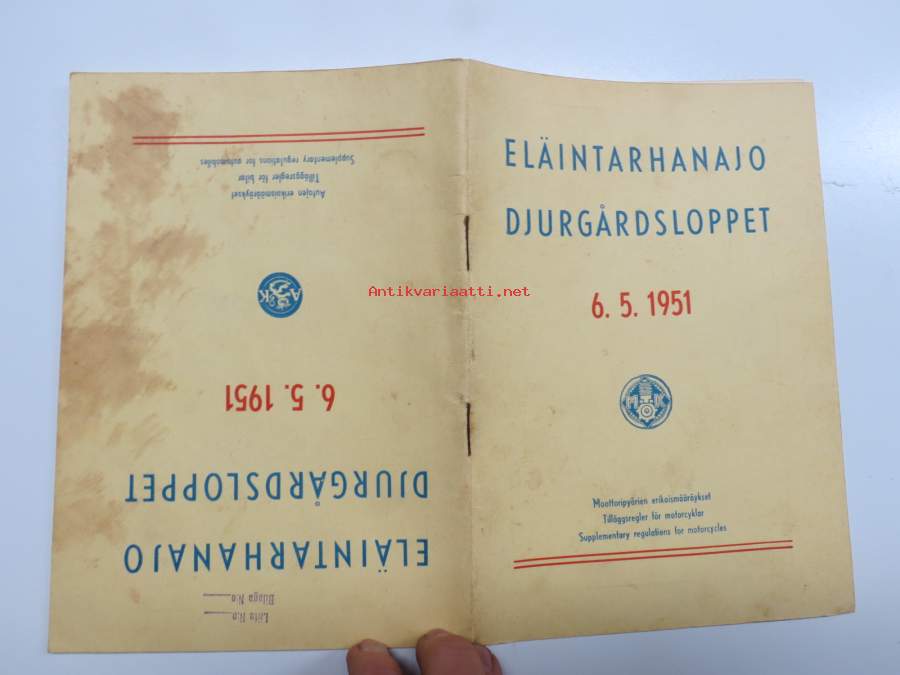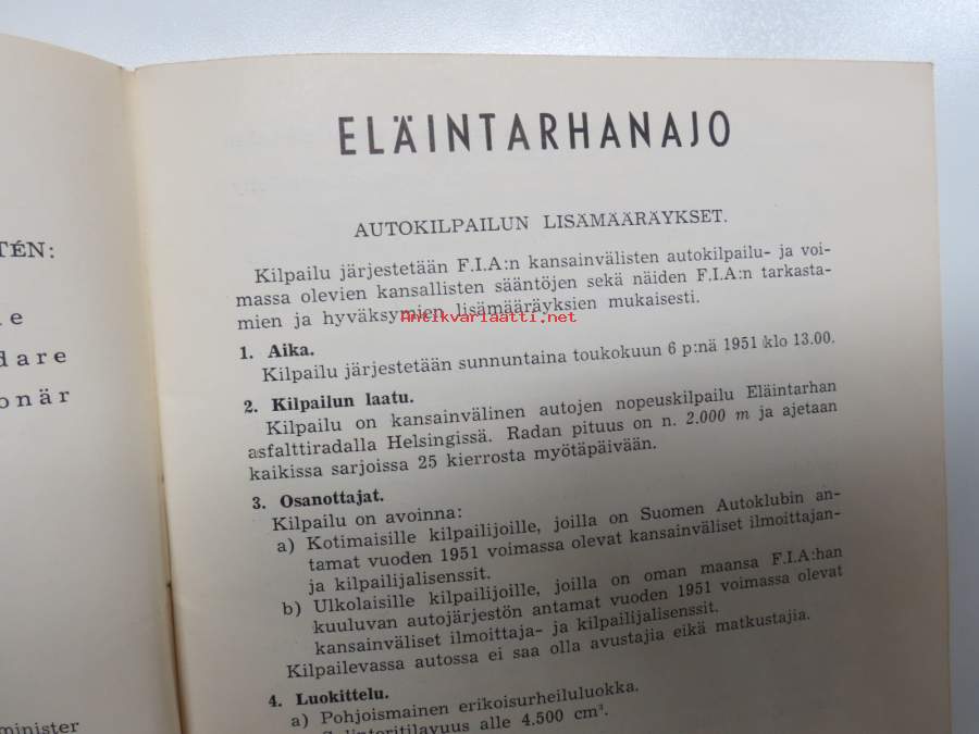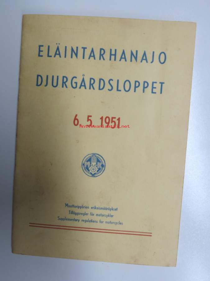 Eläintarhanajo - Djurgårdsloppet 6.5.1951 Erikoismääräykset / Specialbestämmelser / Special Regulations -kilpailumääräykset