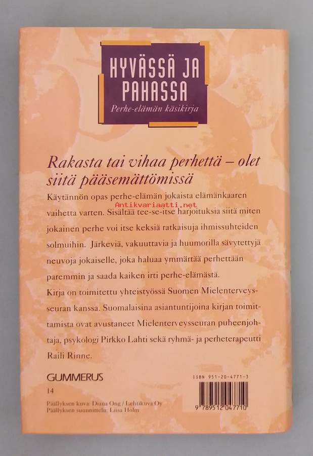 Opas perhe-elämän eri vaiheisiin tarjoaa selkeitä, huumorilla höystettyjä neuvoja arjen ihmissuhdehaasteisiin ja sisältää tee‑se‑itse‑harjoituksia, joiden avulla perheet voivat löytää omia ratkaisujaan. Kuvitettu. Dimensiot 21 ¤ 14 cm.