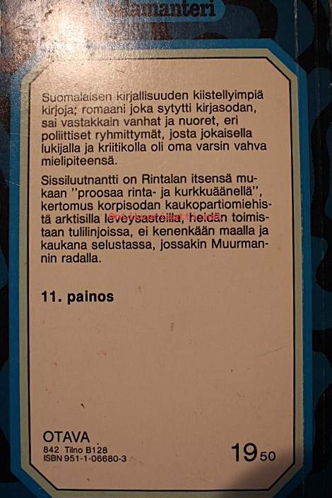 Sissiluutnantti : proosaa rinta- ja kurkkuäänilleKirjaRintala, Paavo , Otava 1963