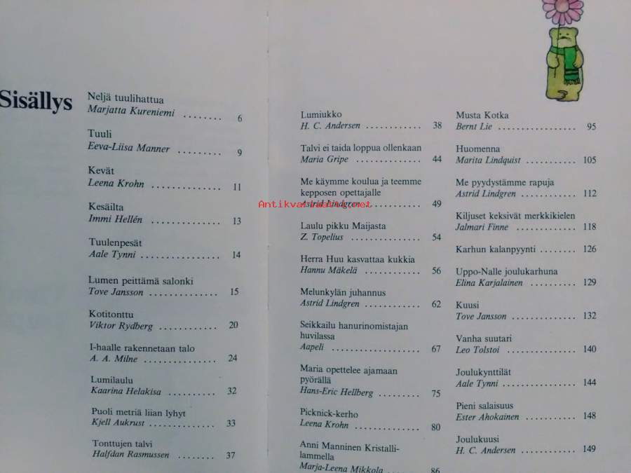 satukirja, sisällysluettelo kuvassa