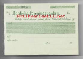 Nordiska Föreningsbanken Ab, Helsingfors , blanco shekki -Pankki toimi nimellä Pohjoismaiden Yhdyspankki (PYP) vuosina 1919−1975, Nordiska Föreningsbanken. Pohjoismaiden Yhdyspankki syntyi kun 1862 perustettu Suomen Yhdys-Pankki ja 1873 perustettu Pohjoismaiden Osakepankki sulautuivat yhteen vuonna 1920