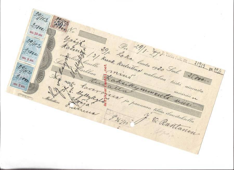 Länsi-Suomen Osake-Pankki Ypäjä 1920 - vekseli