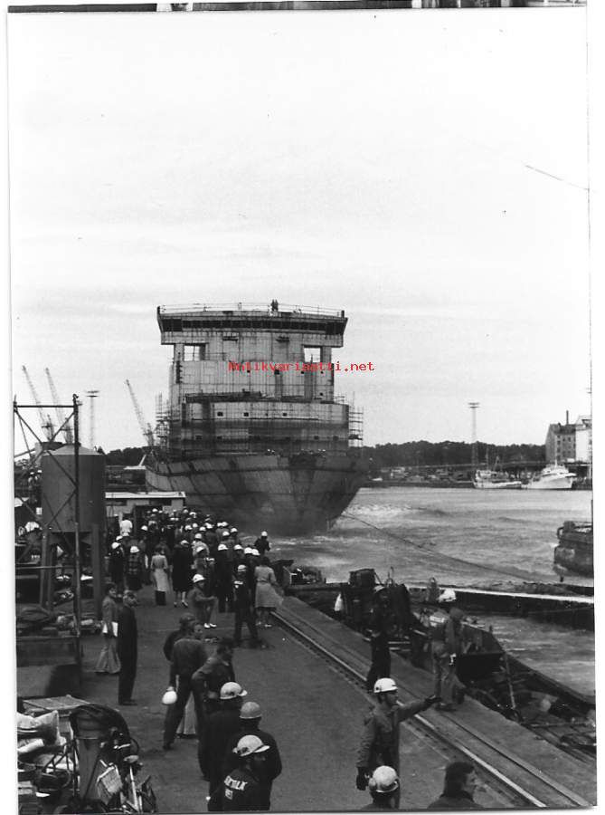 Vesillelaskua Öresundsvarvetin telakalla 1980 laiva valokuva laivavalokuva 9x13 cm