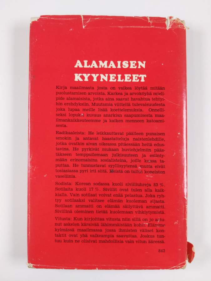 Hyvä. Pientä kulumaa kansissa, pienoista kolhua reunoilla ja kulmissa, selkämyksessä hieman vinoutta. Kansipaperin kunto: repeämiä/kulumaa