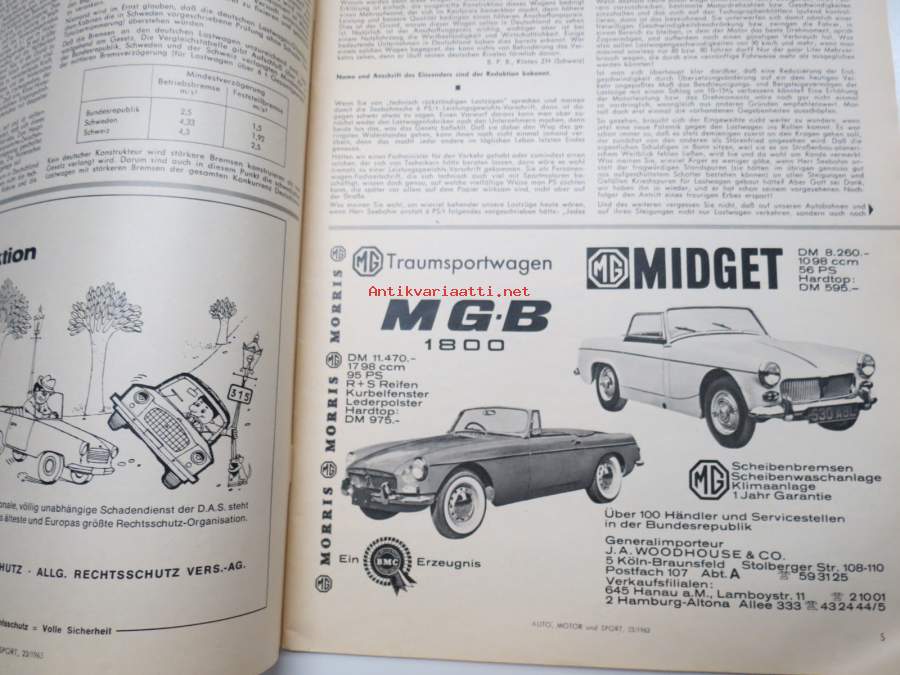 Auto motor und sport 1963 nr 23, Fiat 1500 L, Test Porsche 356C + SC, Die Briten in kommen, Triumph 2000, ym.