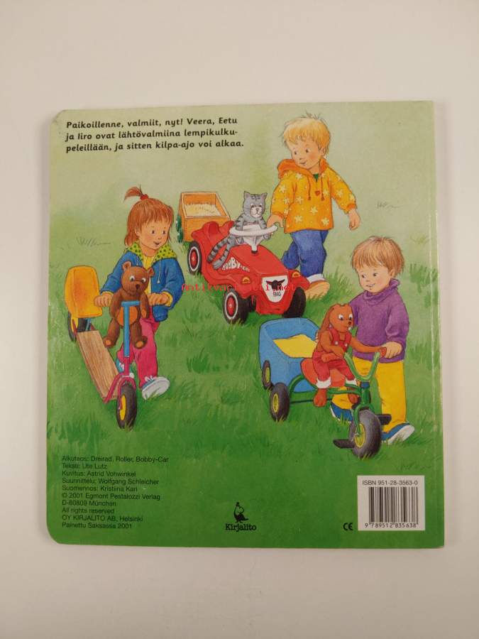 Muu(t) tekijä(t): Kristiina Kari, Astrid VohwinkelAlkuteos: Dreirad, roller, bobby-carAsiasanat: paksulehtiset kirjat, leikkiautot -