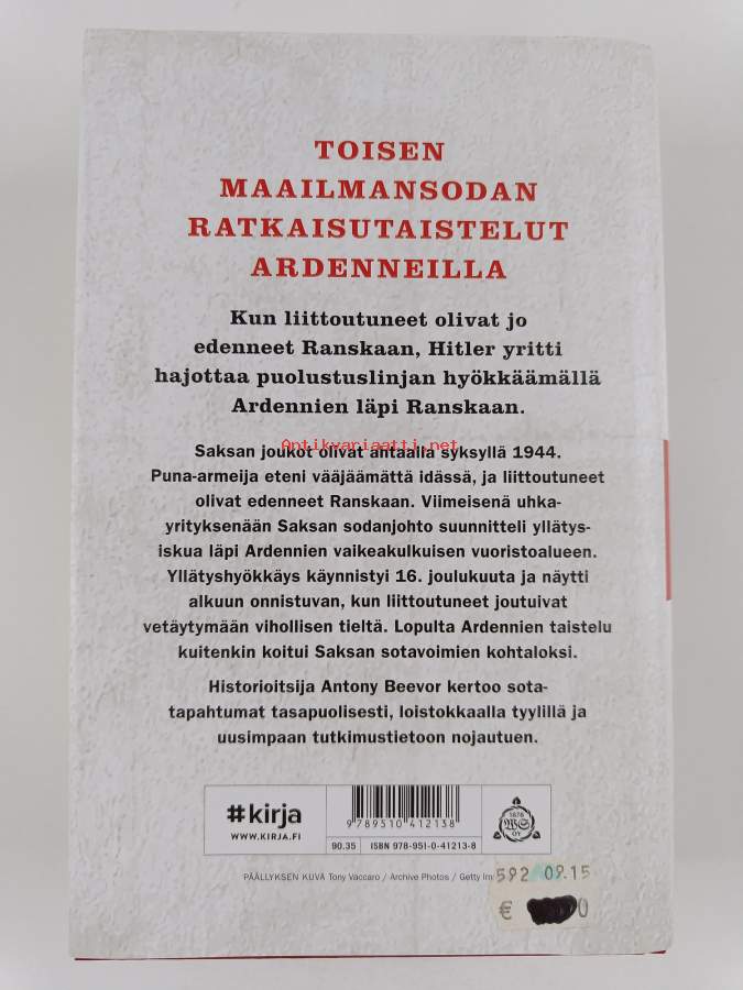 Beevor - Ardennit 1944 - Hitlerin viimeinen uhkayritys. II maailmansodan ratkaisutaistelut Ardenneilla. Upea sotahistoriateos ammattilaiselta.