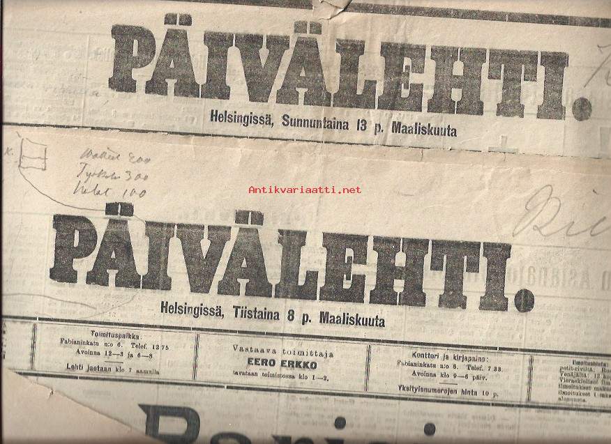 Päivälehti 6,8 ja 13.3.1898 sanomalehti yht 3 lehteä