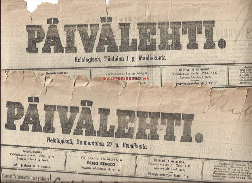 Päivälehti 27,2 ja 1.3 1898 sanomalehti yht 2 lehteä