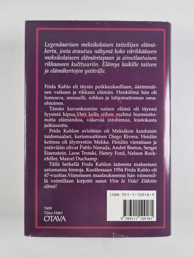 Muu(t) tekijä(t): Kaarina Turtia, Antero KareAlkuteos: Frida : a biography of Frida KahloAsiasanat: elämäkerrat, maalaustaide, taidemaalarit
