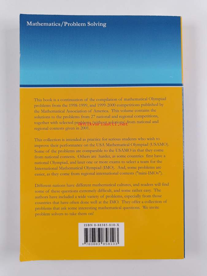 The William Lowell Putnam Mathematical Competition 1985-2000 : problems, solutions, and commentary (ERINOMAINEN)