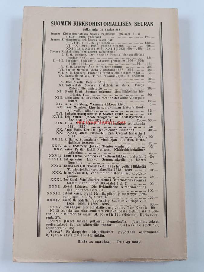 Sarja: Suomen kirkkohistoriallisen seuran vuosikirja 22; Finska kyrkohistoriska samfundets årsskrift
