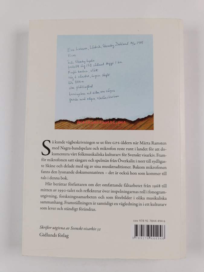 Sarja: Skrifter utgivna av Svenskt visarkiv 52Asiasanat: musiikintutkijat, kansanmusiikki, etnomusikologia, Folk music, folkmusik, etnomusikologi, kenttätyö, fältarbete, musikforskare, kenttätallenteet, fältinspelningar, Field work