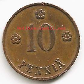 10 penniä 2001 Suome viimeinen 10 pennin kolikko