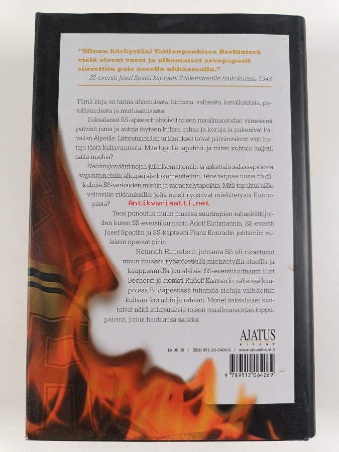 Muu(t) tekijä(t): Heikki Tiilikainen, Theodore P. SavasAlkuteos: Nazi millionaires : the allied search for hidden SS goldAsiasanat: henkilöhistoria, upseerit, taloushistoria, juutalaiset, kansallissosialismi, rikokset, natsit, sotilaalliset järjestöt, sotarikokset, varallisuusrikokset, omaisuus, sotasaaliit, SS-joukot, egendom, personhistoria, nazism, judar, militärorganisationer, kavallus, officerare, krigsförbrytelser, förmögenhetsbrott, försnillning, omaisuusrikokset