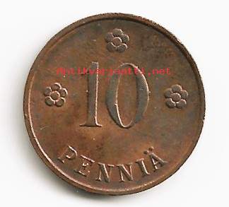 10 penniä 2001 Suome viimeinen 10 pennin kolikko