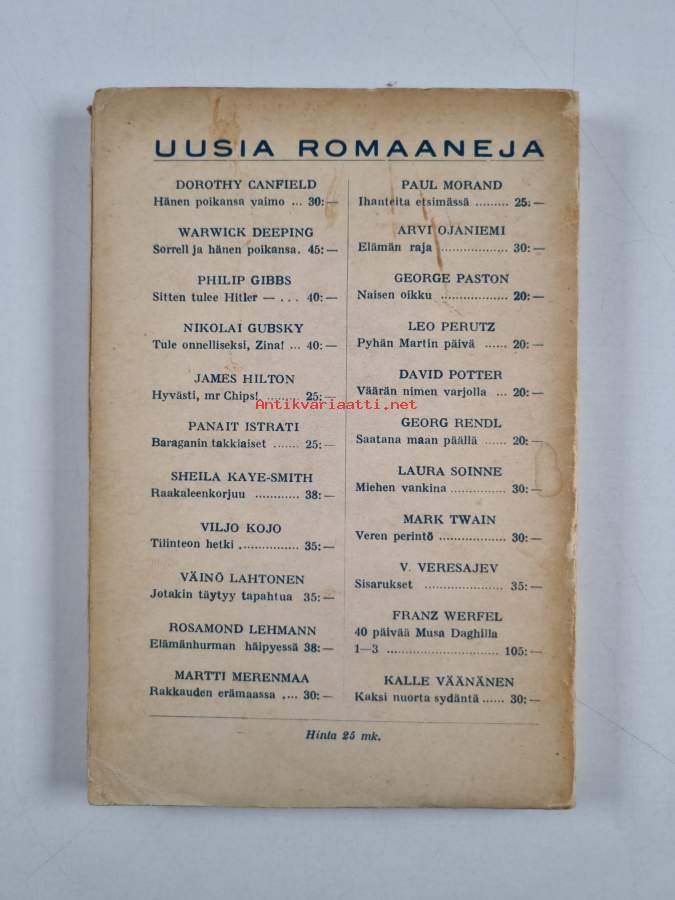 Muu(t) tekijä(t): Valfrid HedmanSarja: Uusia romaaneja 41Alkuteos: Les chardons du Baragan