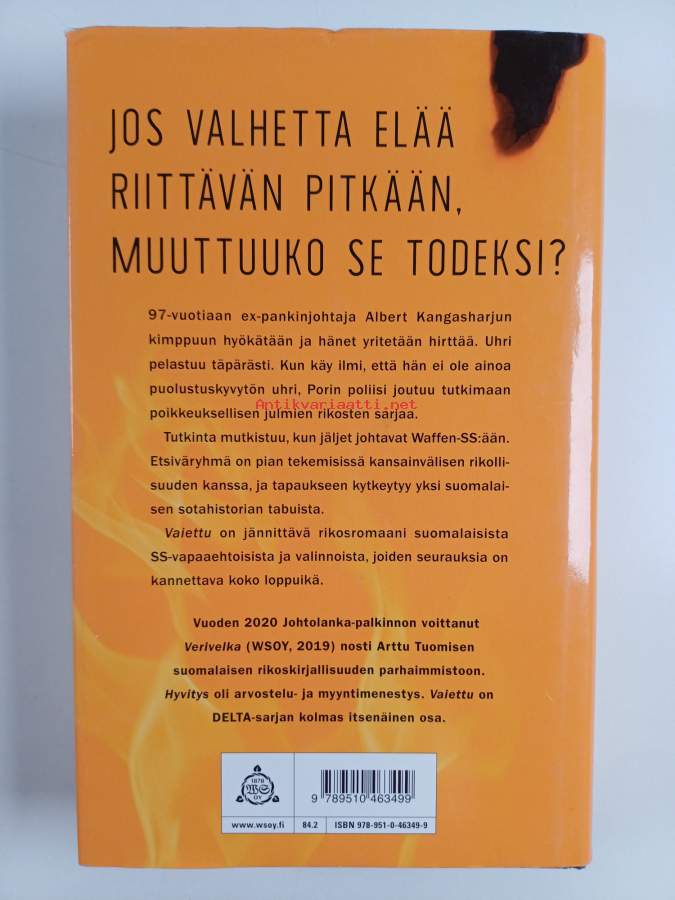 Hyvä. Tarkempi kuntoluokka: K3- ; Hieman kolhua selkämyksen päissä, hieman käytön jälkeä kansissa, selkämyksessä aavistus vinoutta. Kansipaperin kunto: pientä kulumaa