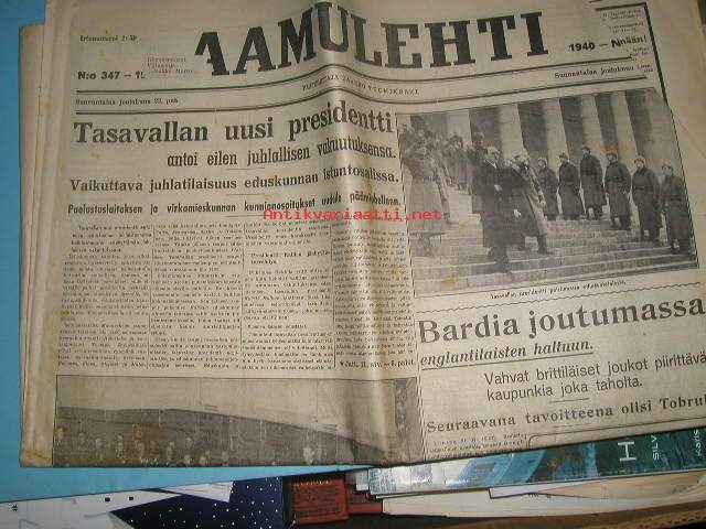Aamulehti helmikuun 26. p:nä 1940 Näköispainos sarjat sodan lehdet