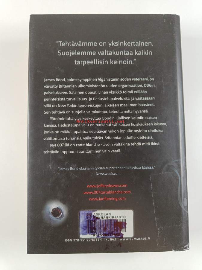Merkinnät: omistajamerkintä (tarra)Sarja: 007Alkuteos: Carte blancheAsiasanat: James Bond
