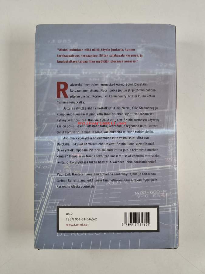 Hyvä. Tarkempi kuntoluokka: K3- ; Hieman kolhua yläreunassa, selkämyksessä hieman vinoutta. Kansipaperin kunto: pientä kulumaa