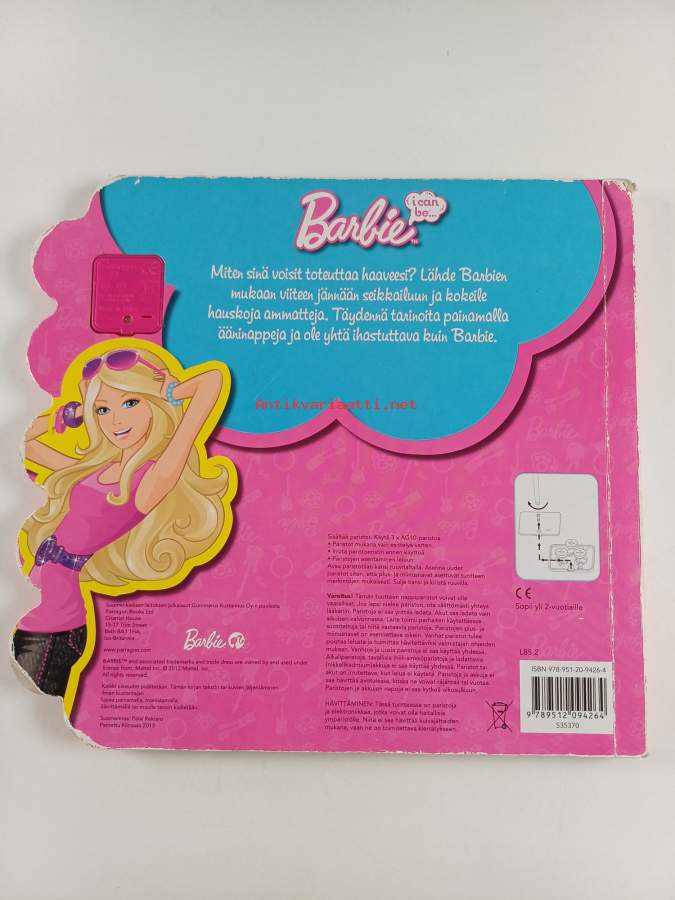 Muu(t) tekijä(t): Päivi RekiaroSarja: Barbie I can be..Asiasanat: lastenkirjallisuus, valokuvamallit, ratsastajat, kilpa-autoilijat, kitaristit, äänet, eläintenhoitajat, kuvakirjat, paksulehtiset kirjat, äänitehostekirjat