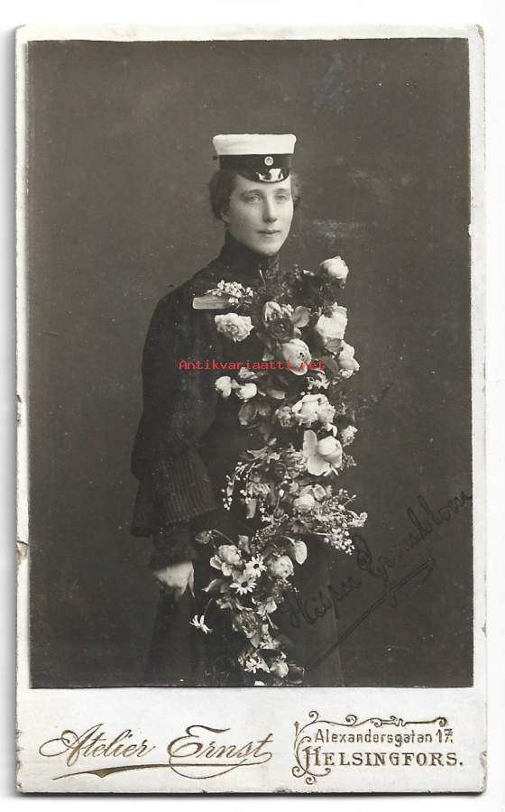 1800/1900 taitteen naisylioppilas - visiittikuva ateljeekuva valokuva