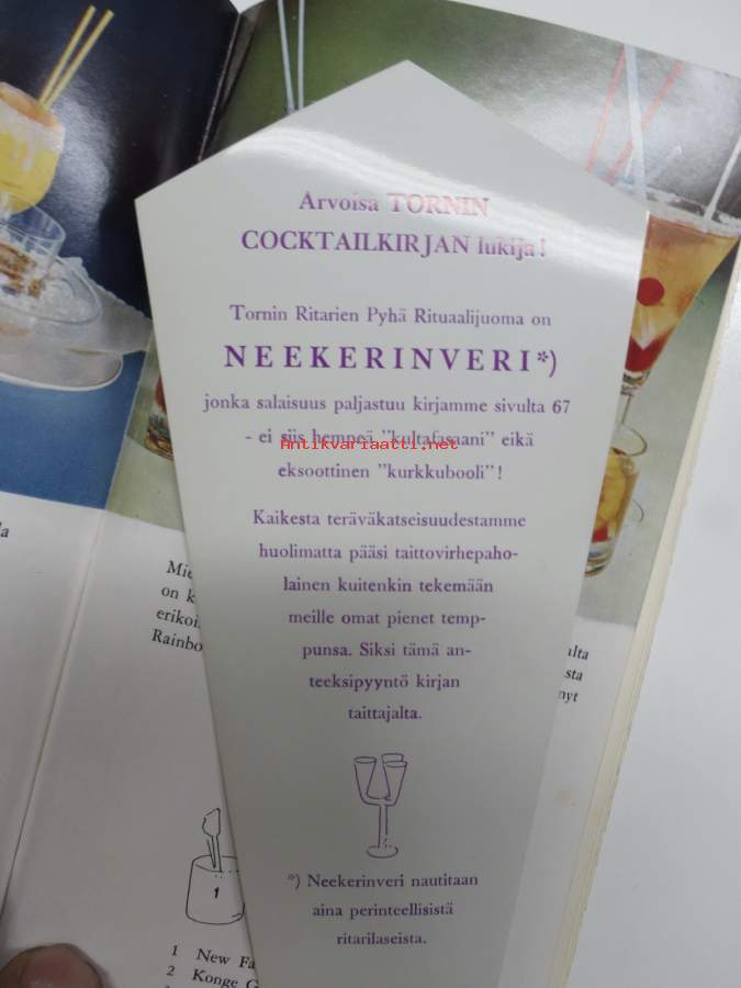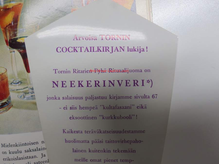 Tornin Cocktailkirja - Tornin kirjat VII, perustietoja ja parisataa reseptiä - sisältää erillisen Tornin Ritarien Pyhän Rituaalijuoman "Neekerinveri" -reseptin
