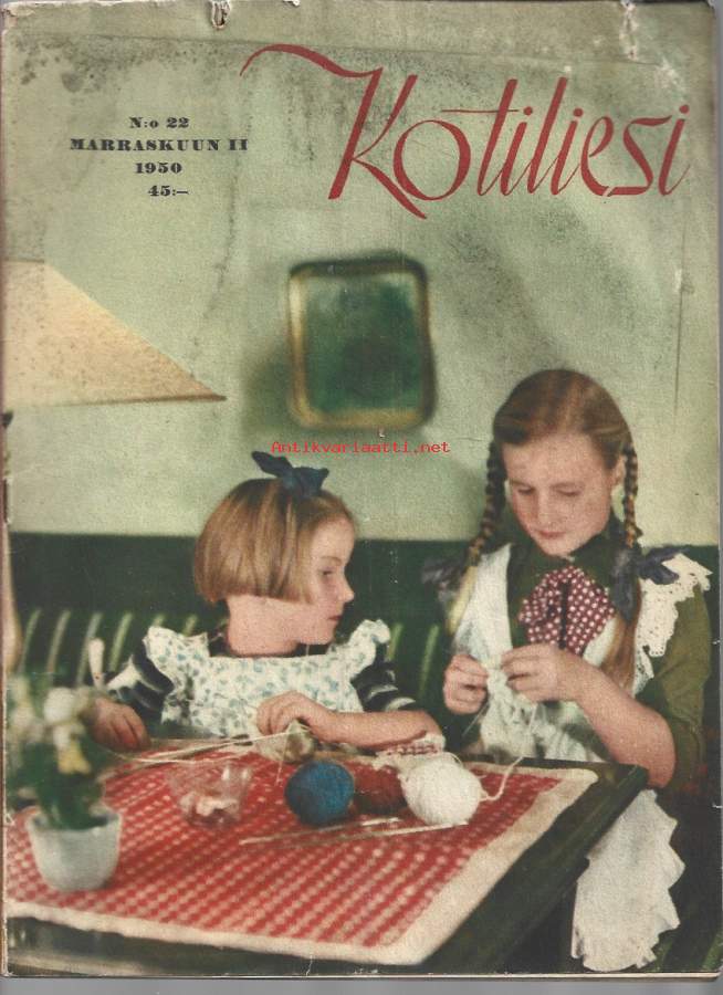 Kotiliesi 1950 nr 22 / poika perii talon, miten käy tyttären, mustien maassa, pesutyö, lihan osto