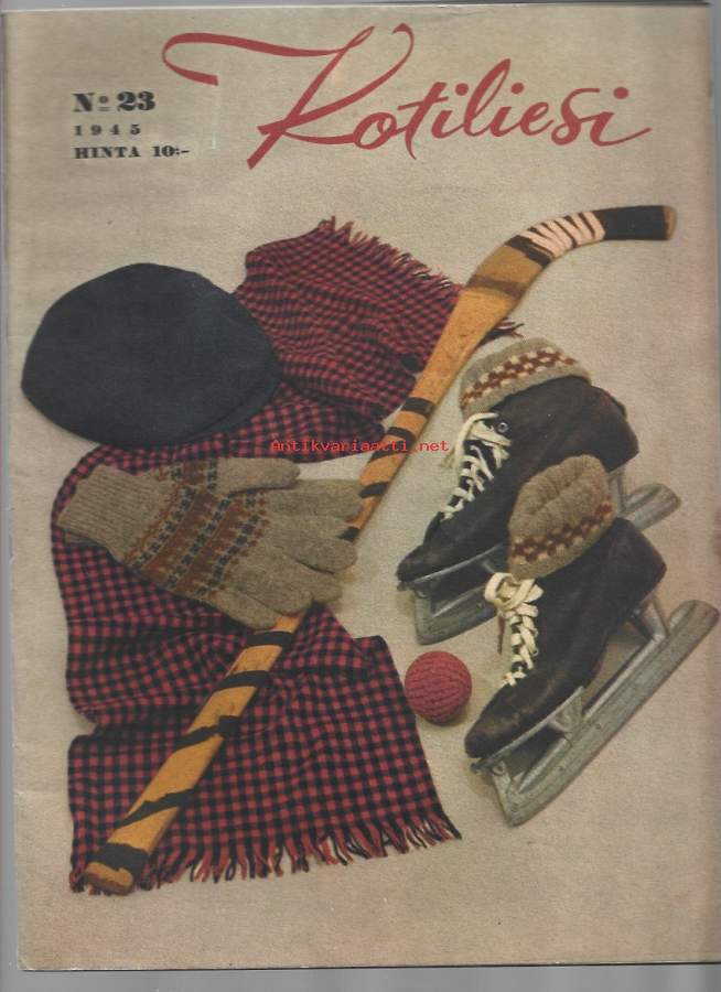 Kotiliesi 1945 nr 23, sis. mm. seur. artikkelit / kuvat / mainokset; Kansikuva sommitellut Doris Bengström, Mänttä paperinenäliinoja, Miten saataisiin maalaisolot nuorisoa tyydyttäviksi?, Kunta on yhteinen kotimme, Kaksi vuosikymmentä karjan parissa - tarkastuskarjakon taipaleelta - Maiju Viitala - Ilmajoki - Kurkistamme nuoren parin pesään, Se polttopuupulmamme, Joulunukke pukeutuu juhlaan, Suomalaisia emäntiä - Tilda Soini - Jämijärvi - Soinin tila, Uutta kauneutta vanhaan kankaaseen, Kuperkeikkatonttu teko-ohjeet, Kun vain lapsi säilyisi - lasten tuberkuloosi, Löytääkö joulu meille?, Joko pian leivotte?, Oy Vehnä Ab Raisio - siilot, Poimintapäivän tuoreita marjoja ja vihanneksia - Paulig syväjäädytystuotteet, Suomalaisia kirjokoruja - suunnitellut G. Paaer - Kalevala Koru Oy, ATO-koru, Kieku ja Kaiku, Euran Paperi joululiinat,