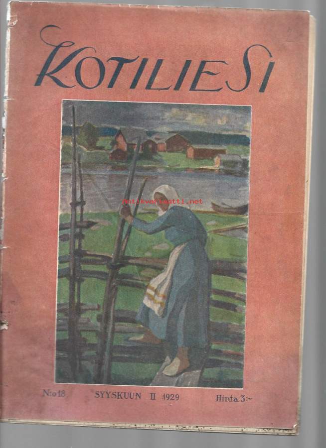 Kotiliesi 1929 nr 18 / Kansikuva Vilho Sjöström - Aidalla, Pikkulapsi ja pahat voimat, Anna Sahlstén 70 v., Berliinin Kaasu- ja vesinäyttely, Vauvanvaatteet, Kaali
