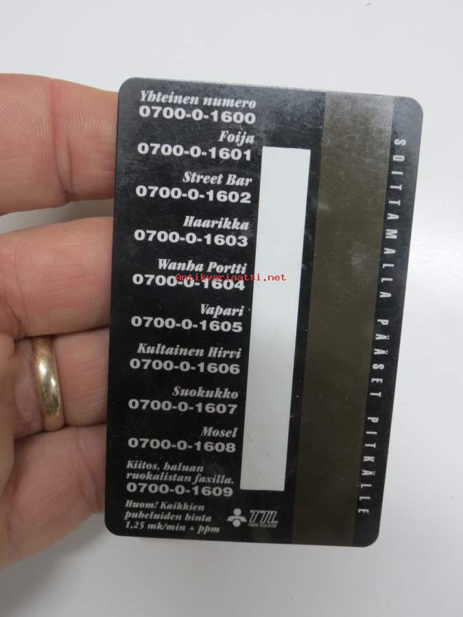 Seesam Puhelinkortti - Ravintolaetukortti 10 mk -puhelinkortti vuodelta 1990-luvulta