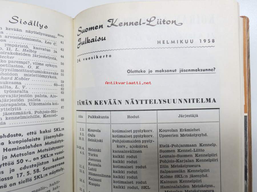 SKL - Suomen Kennel-Liiton julkaisu (jäsenlehti) vv. 1952-1958 -sidotut vuosikerrta neljänä sidoksena