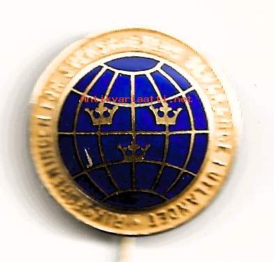 "RIKSFÖRENINGEN FÖR SVENSKAR I UTLANDET" (Ruotsalaisten ulkomailla toimiva kansallinen yhdistys). neulamerkki rintamerkki emali