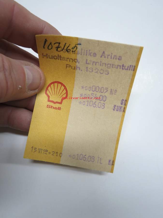 Shell huoltoasemakuitti 12.7.1966