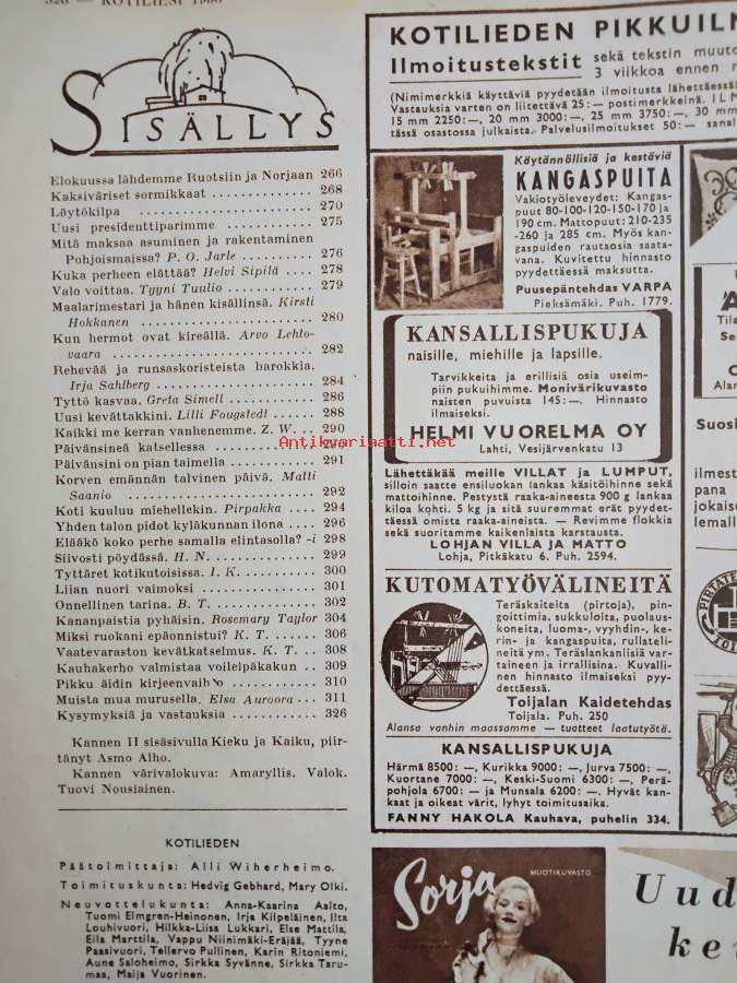Ilmestynyt 8.3.1956,68s., sisällysluettelo kuvassa(Hossola)