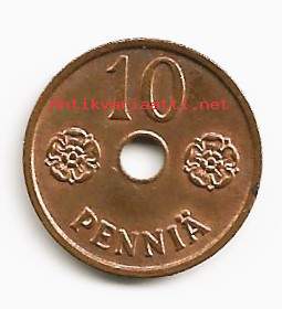 10 penniä 2001 Suome viimeinen 10 pennin kolikko