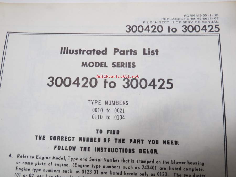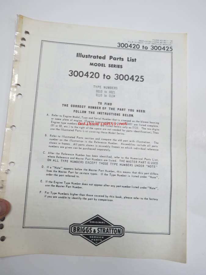 Briggs & Stratton Illustrated Parts List Model Series 300420 to 300425