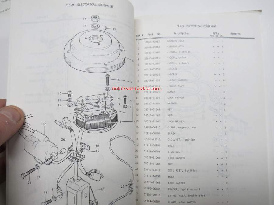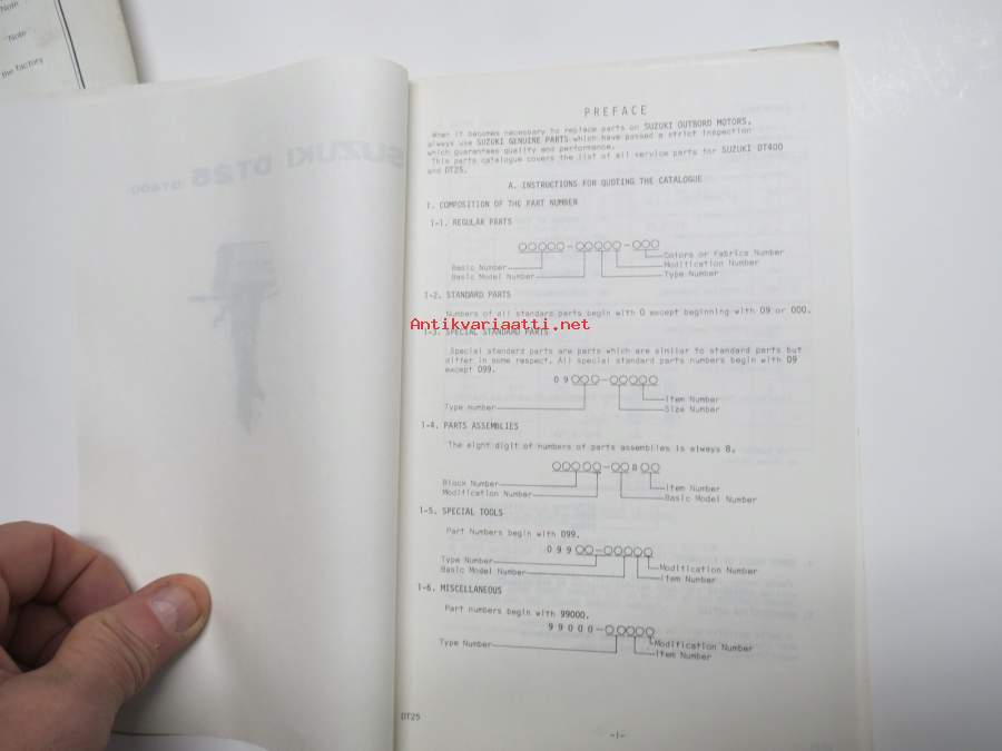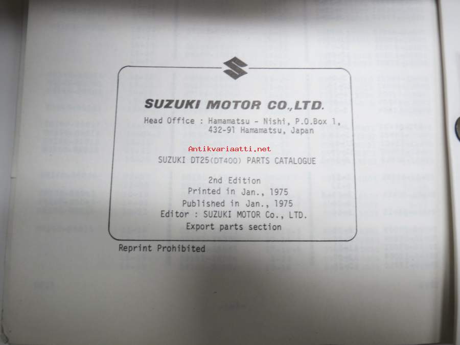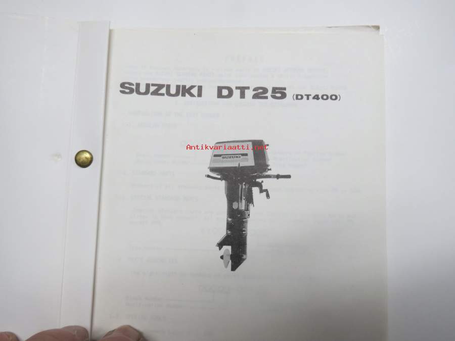 Suzuki DT25 (DT400) outboard parts catalogue 1975, illustrations / perämoottori, varaosaluettelo räjäytyskuvineen