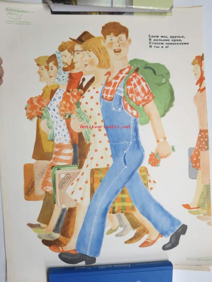 "Brjanskiin, Krasnodariin (Uralille - Siperiaan) sosialismia rakentamaan" -neuvostoliittolainen propagandajuliste v. 1970
