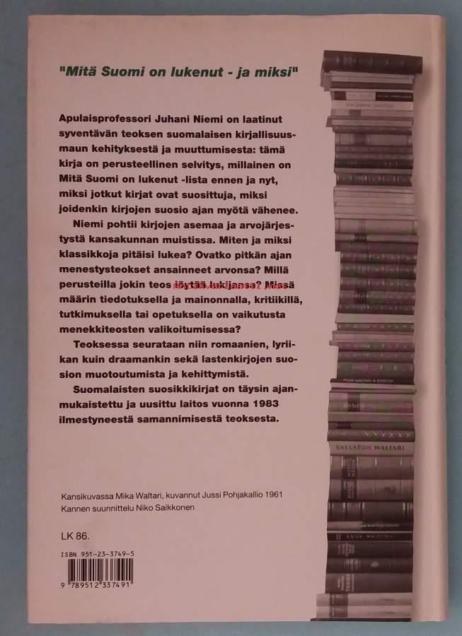 Suomalaisten suosikkikirjat . ( Lukemistutkimus, lukutottumukset, kirjallisuustutkimus)