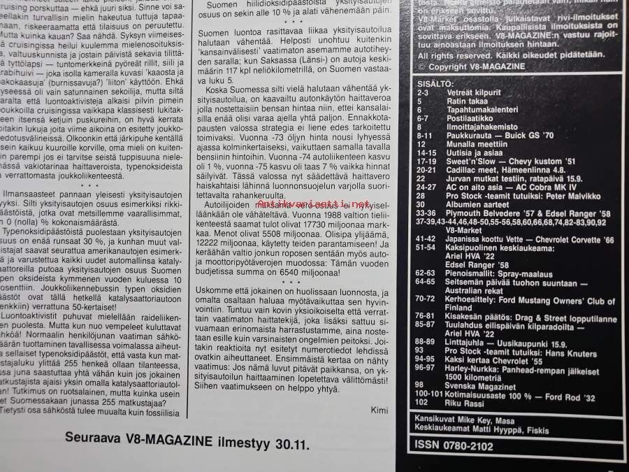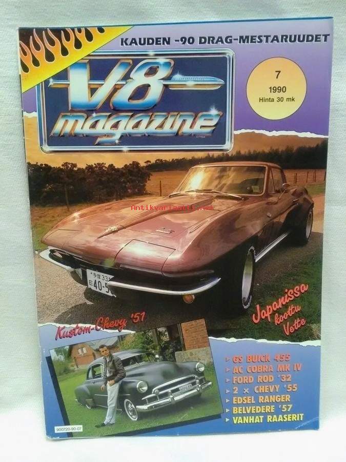 104s., juliste paikallaan, sisällysluettelo kuvassa,sis.mm. Kustom-Chevy 1951,Japanissa koottu Vette,Kauden 1990 drag-mestaruudet