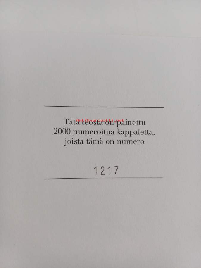 Hyvä. Hieman kulumaa kansissa, aivan pienoista naarmuisuutta takakannessa, selkämyksessä aavistus vinoutta. numeroitu 1217/2000