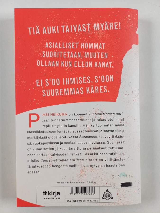 Hyvä. Tarkempi kuntoluokka: K3+ ; Pienoista taitejälkeä etukannen alakulmassa, pienoista kulumaa kansissa, takana vanha hintalappu