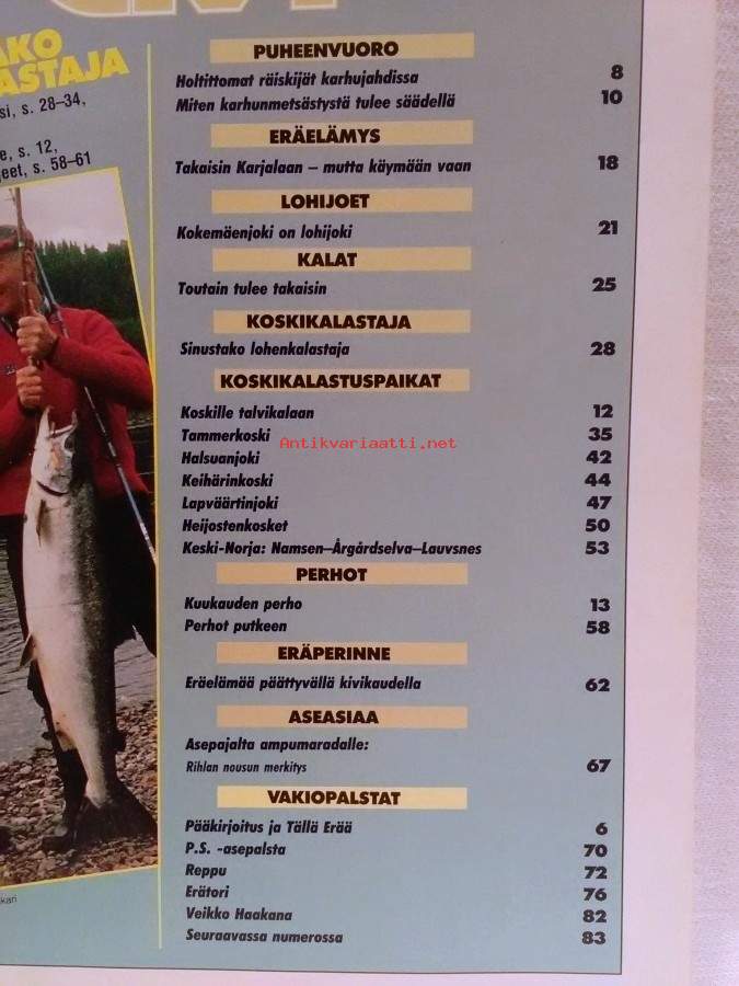 lehti,84s., sisällysluettelo kuvassa,sisällys mm. 34s. koskikalastusta,Kokemäenjoki, Tammerkoski, Halsuanjoki, Keihärinkoski, Lapväärtinjoki, Heijostenkosket,Kumilautalla Karjalassa